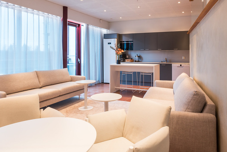Ilmatar Sauna, located on the 5th floor of Building 2, accommodates approx. 8 people at a time. The sauna facilities include 15 towels and bench covers. Use of the cozy Ilmatar Lounge, located adjacent to the sauna, is included in the rental fee, making it easy to combine the sauna with a relaxed meeting or get-together for a smaller group. Ilmatar Lounge offers 15 seats as well as a covered terrace. Basic cleaning is included in the rental fee.
